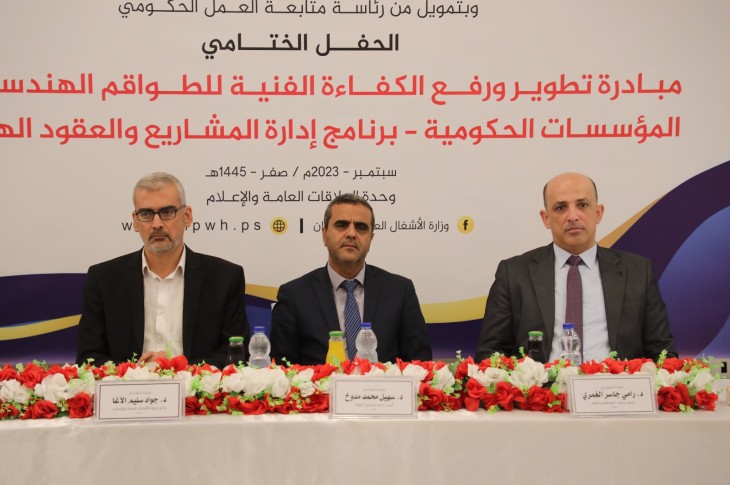 وشهد الحفل حضور م. سهيل مدوخ الأمين العام لمجلس الوزراء الفلسطيني، و د. جواد الأغا وكيل وزارة الأشغال العامة والإسكان، ود. رامي الغمري رئيس ديوان الموظفين العام إلى جانب عدد من الشخصيات الاعتبارية.